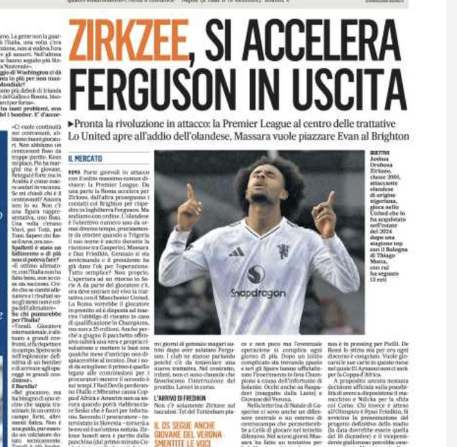 齐尔克泽一直都是罗马的目标,该队已经与曼联展开接洽,希望以租借形式引进他,并设定一些具体的目标作为激活永久交易的条件。但曼联希望从这笔交易中获取经济利益,最好直接买断,或者设定买断义务并且支付一些租借费。