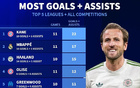德转列五大联赛球员目前制造进球TOP10:凯恩造22球居首